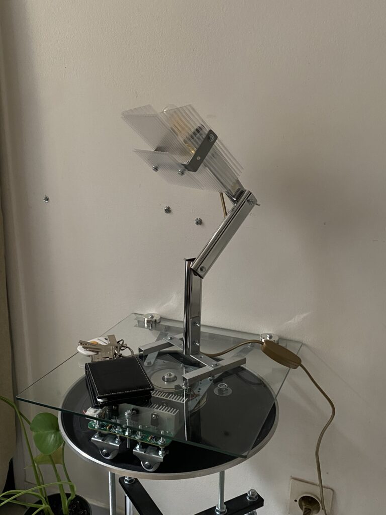 Profilés, connecteurs, charnières de porte de placard et autres éléments métalliques divers collectés dans la rue, polycarbonate récupéré, boulons, écrous. Première série de luminaires articulés découlant de nouvelles expérimentations en réemploi autour du métal et du plastique. Prototypes uniques signés, disponibles à la vente. Contact par mail. Designed & handmade by Nicolas Guillamot Vallribera. All rights reserved ©