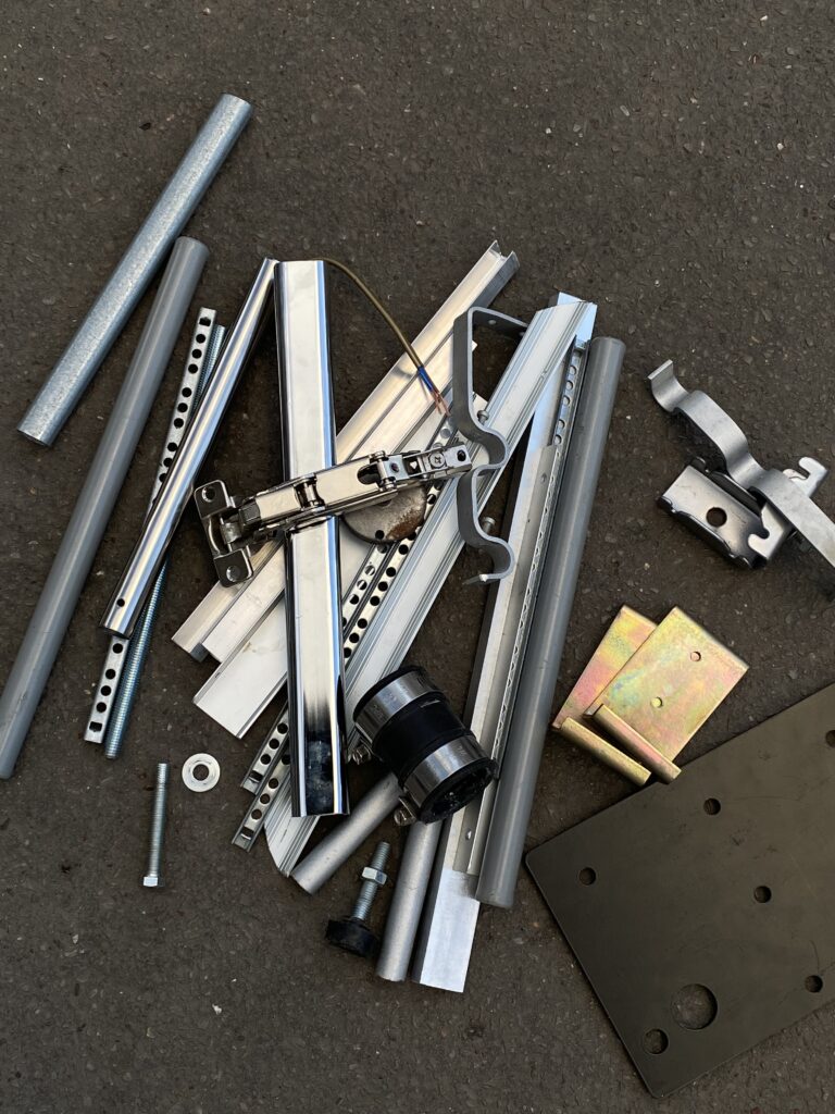 métalliques divers collectés dans la rue, polycarbonate récupéré,