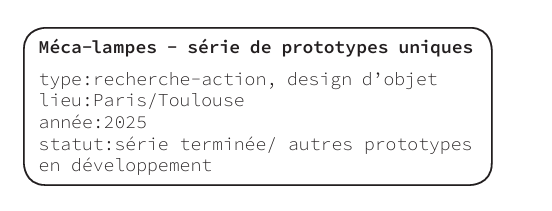 Méca-lampes – série de prototypes uniques