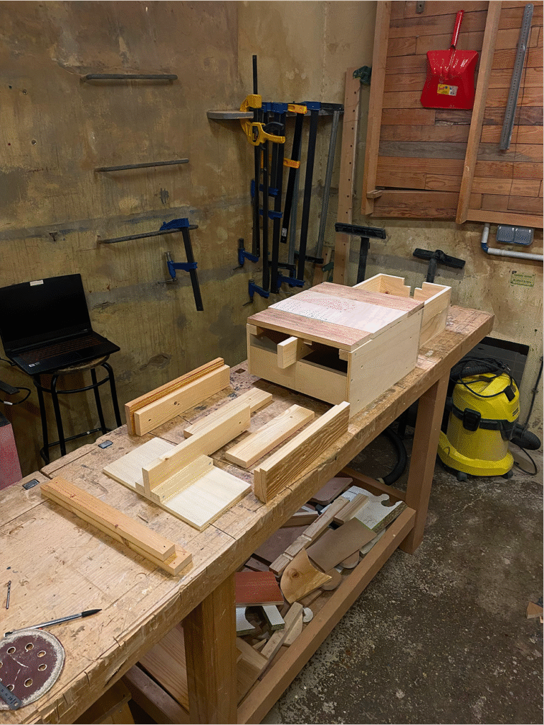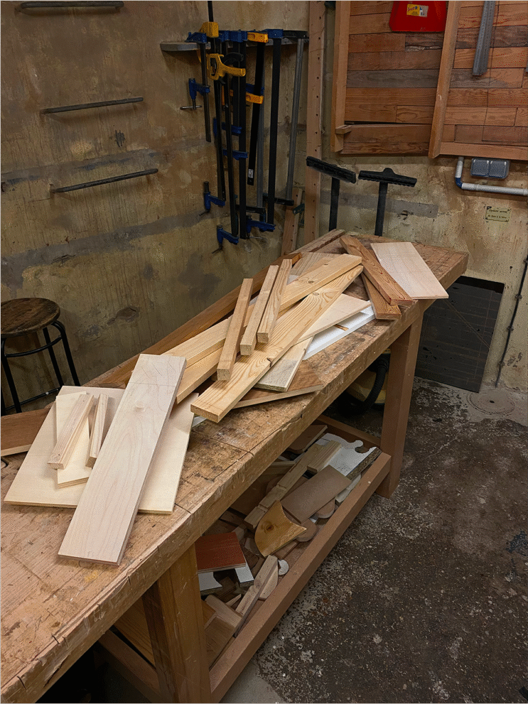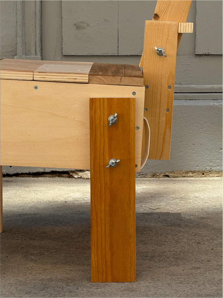 Sur le plan de la conception-fabrication, tous les objets nomades découlent d’une intention globale d’économie de moyens maximale. Leur assemblage presque intuitif est pensé pour être lisible et reproductible. Ils sont conçus et fabriqués avec le moins de complexité possible, de temps d’usinage et d’assemblage. L’idée est de créer des meubles simples et rapides à construire, réalisables par tout le monde, et facilement transportables. L’esthétique ne dépend presque que des matériaux collectés et de l’addition de toutes ces contraintes. De plus, dans le cadre du projet, ce ne sont pas tant les objets eux-mêmes qui importent, mais le processus à travers lequel ils sont réalisés et, et les façons dont ils sont ensuite utilisés.